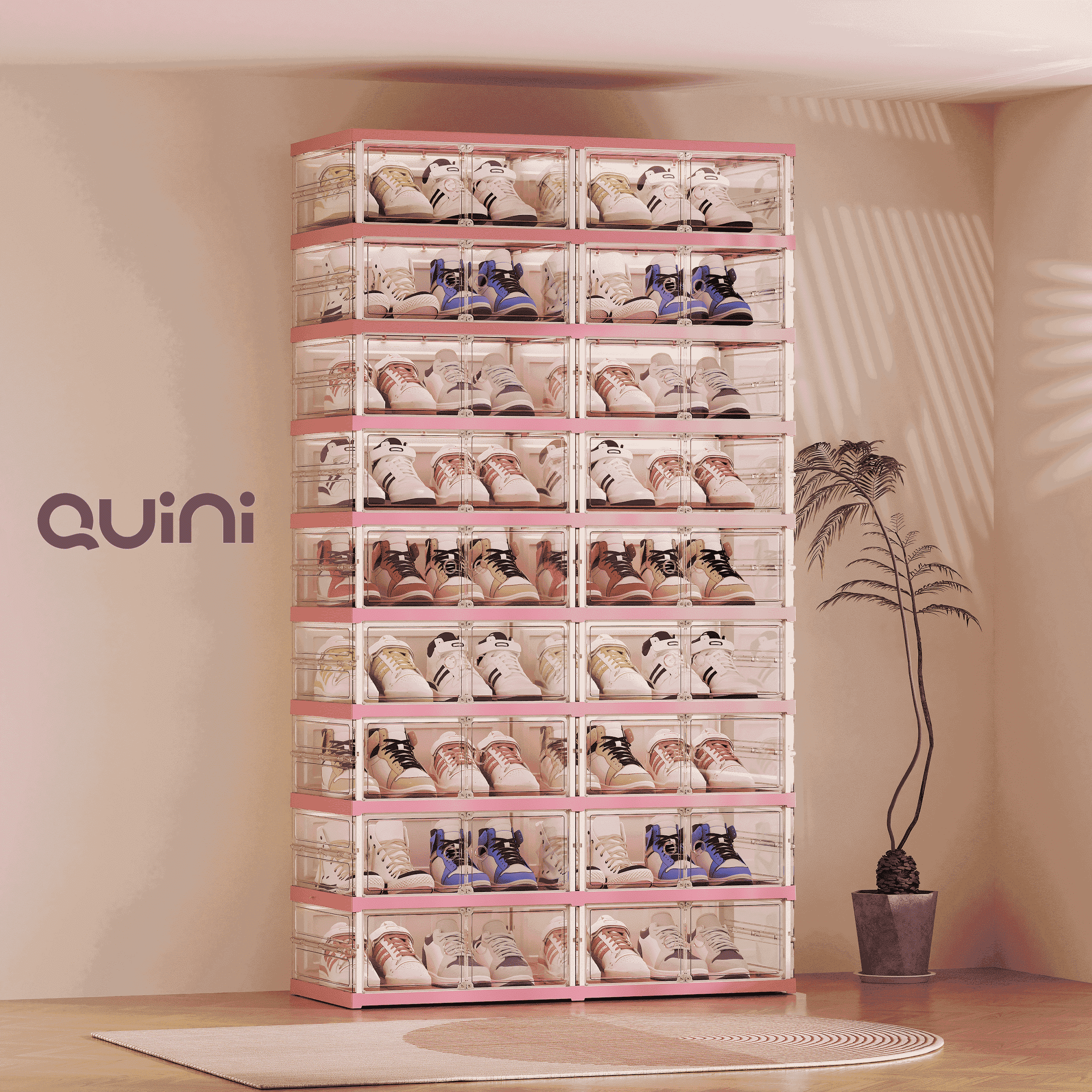 Quini Gold Kabinet Sepatu Lemari Sepatu 3/6/9 Tingkat. Rak Sepatu Transparant - Pink / 9 Tingkat